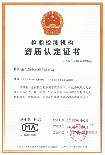 山東華中檢測有限公司,是通過山東省質量技術監督局資質評審,依法成立的第三方環境檢測機構,公司所有設備通過北京市計量檢測科學研究院計量認證,青島市計量技術研究院,并取得了檢定合格證書。同時通過了青島市公安局化學品使用備案,可面向社會出具第三方CMA權威檢測報告,檢測報告在中華人民共和國境內具有法律效力。
